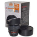 Progettato per fotocamere con formato 35mm, questo obiettivo offre una lunghezza focale fissa di 14mm, catturando un campo visivo impressionante di 114.2°. È composto da 14 elementi disposti in 10 gruppi, con la presenza di un elemento asferico per minimizzare le aberrazioni ottiche e garantire immagini nitide e dettagliate.